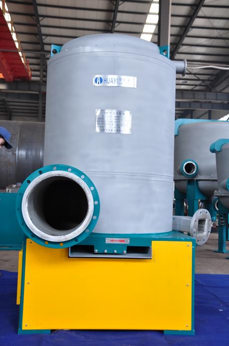 結構特點 :改變傳統壓力篩降流篩選的方式,漿料由底部進漿,重雜質被擋在底部,間歇排除,大大減輕了雜質對篩鼓和轉子的磨損,延長了篩鼓和轉子的使用壽命;漿料在上升過程中,細小的輕雜質片很容易上升到頂部由尾漿口排出,漿料通過長旋翼片的強烈清洗,篩選質量和篩選能力大幅度提高。與傳統降流篩相比,良漿含雜率降低約30%。該機頂部設有升起裝置,為客戶檢查、檢修篩鼓和轉子提供了便利。該機結構合理,運行穩定,易于操作,其篩選技術處于國內產品領 先水平,將更能為客戶創造良好的經濟效益。